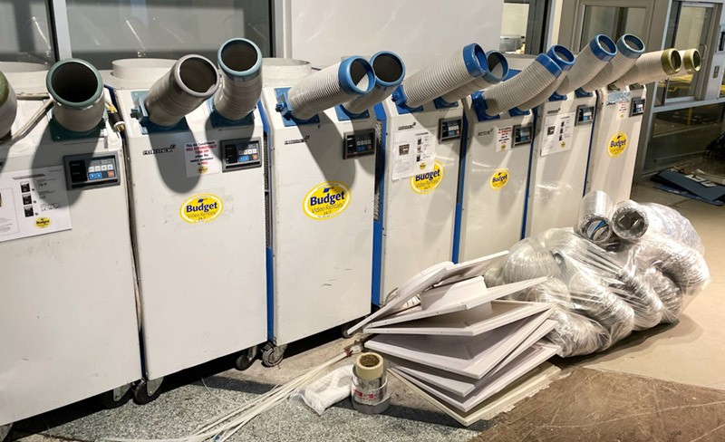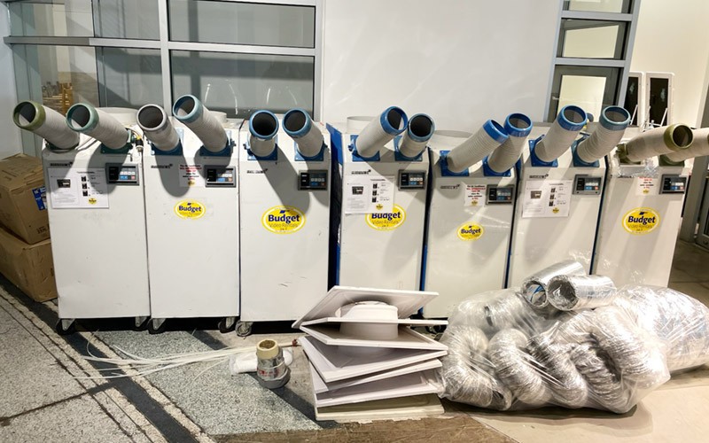 Budget Video just wrapped a project with 7 of our "R2D2" portable air conditioning units, all running 7 days a week. These units are versatile, reliable, and can be installed in many different locations. Uses include stage and film production, private homes, offices, warehouses, restaurants, hotels, meeting rooms, conference rooms, and so on. Our technicians will deliver and install one or multiple units at your location. We will make sure everything is configured and working properly. Please call us for details.